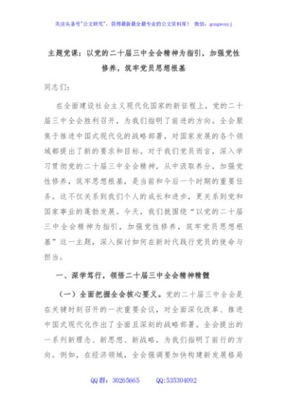 / 主题党课:以党的二十届三中全会精神为指引,加强党性修养,筑牢党员思想根基