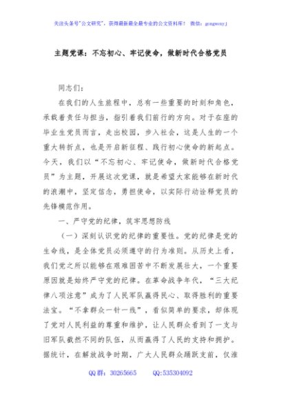 主题党课:不忘初心、牢记使命,做新时代合格党员