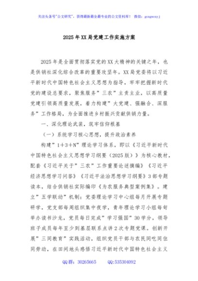 / 2025年XX局党建工作实施方案