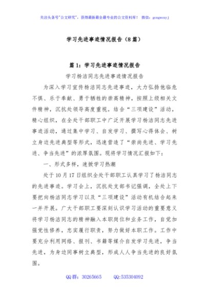 (8篇)学习先进事迹情况报告