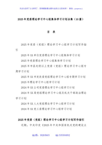 / (10篇)2025年党委理论学习中心组集体学习计划合集