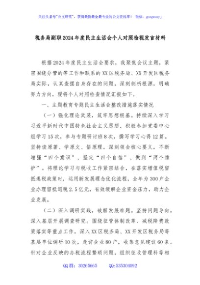 / 税务局副职2024年度民主生活会个人对照检视发言材料