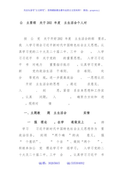 / 公司主要领导关于2024年度民主生活会个人对照检视剖析材料
