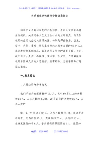 / 关爱困难退休教师专题调查报告