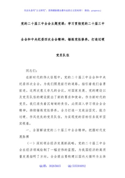 / 党的二十届三中全会主题党课:学习贯彻党的二十届三中全会和中央纪委四次全会精神,锤炼党性修养,打造过硬党员队伍