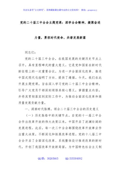 / 党的二十届三中全会主题党课:深学全会精神,凝聚奋进力量,勇担时代使命,共谱发展新篇
