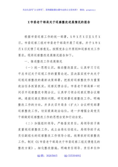 XX街道党工委关于区委巡察整改进展情况的报告(“三资”)