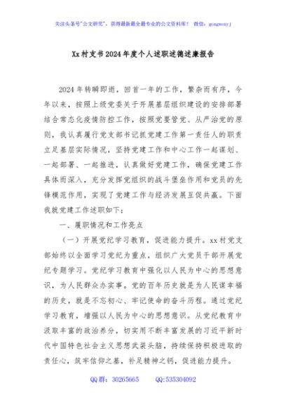 / Xx村支书2024年度个人述职述德述廉报告