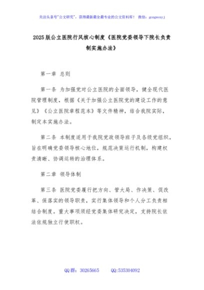 / 2025版公立医院行风核心制度《医院党委领导下院长负责制实施办法》