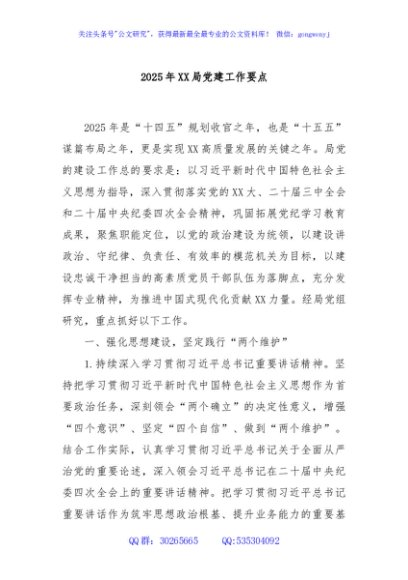 / 2025年XX局党建工作要点