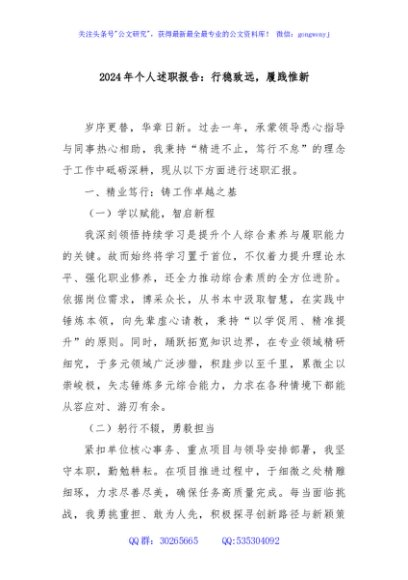 / 2024年个人述职报告:行稳致远,履践惟新