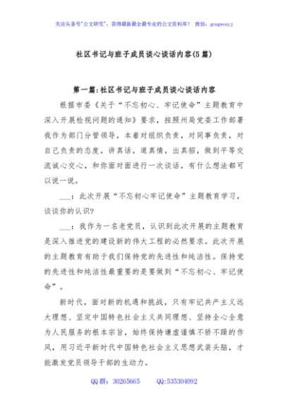 / (5篇)社区书记与班子成员谈心谈话内容