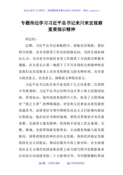 专题传达学习来川来宜视察重要指示精神