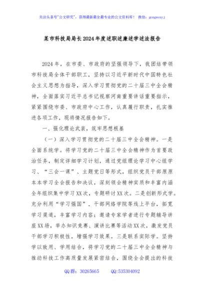 / 某市科技局局长2024年度述职述廉述学述法报告