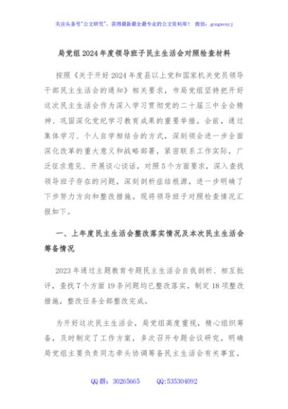 / 局党组2024年度领导班子民主生活会对照检查材料