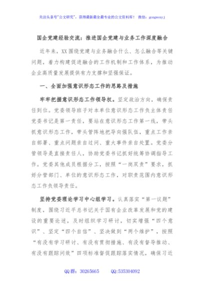 / 国企党建经验交流:推进国企党建与业务工作深度融合