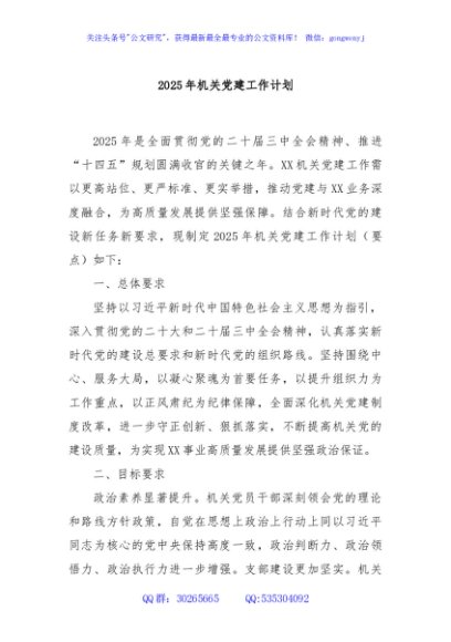 / 2025年机关党建工作计划