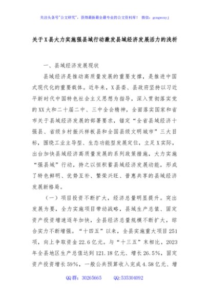 / 关于X县大力实施强县域行动激发县域经济发展活力的浅析