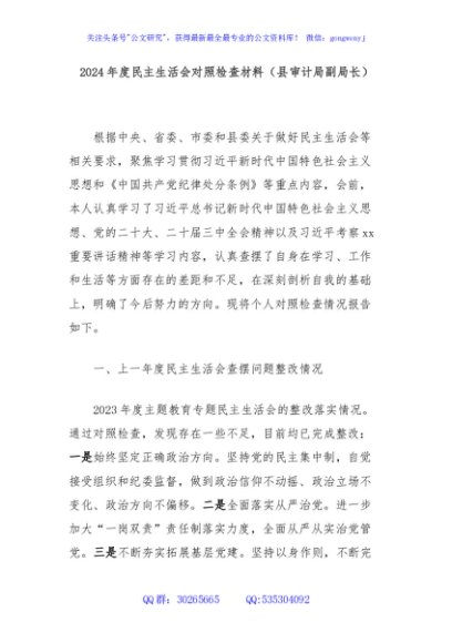 / 2024年度民主生活会对照检查材料(县审计局副局长)