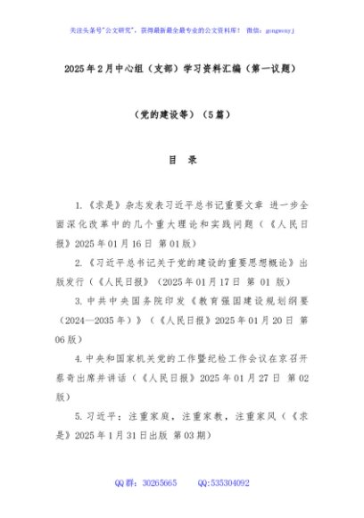 / (5篇)2025年2月中心组(支部)学习资料汇编(第一议题)(党的建设等)