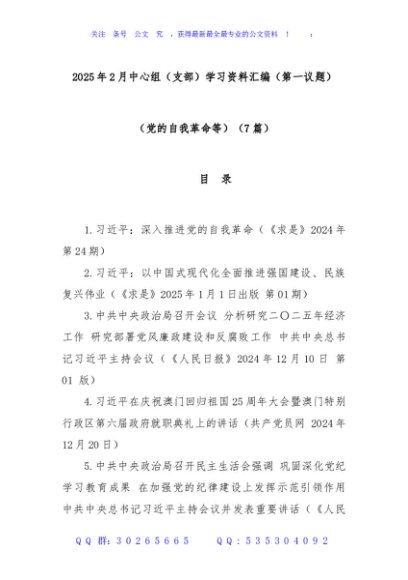 / (7篇)2025年2月中心组(支部)学习资料汇编(第一议题)(党的自我革命等)