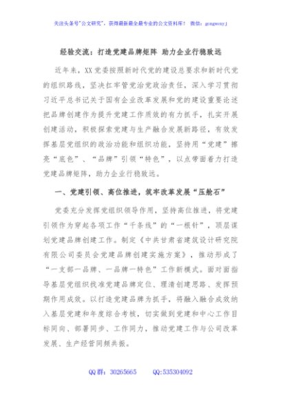 / 经验交流:打造党建品牌矩阵 助力企业行稳致远