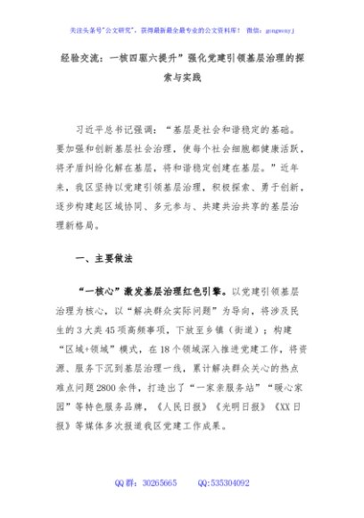经验交流:一核四驱六提升”强化党建引领基层治理的探索与实践