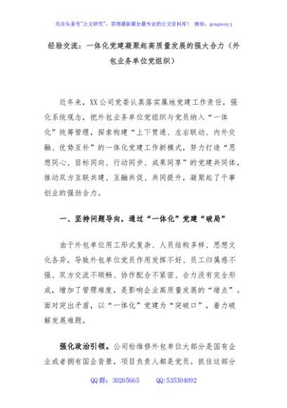 经验交流:一体化党建凝聚起高质量发展的强大合力(外包业务单位党组织)