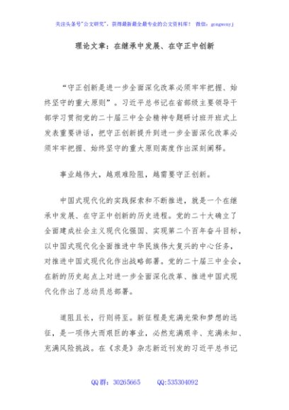 / 理论文章:在继承中发展、在守正中创新