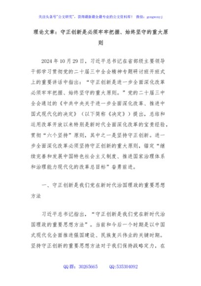 / 理论文章:守正创新是必须牢牢把握、始终坚守的重大原则