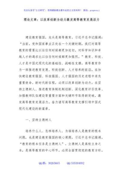 / 理论文章:以改革创新为动力激发高等教育发展活力