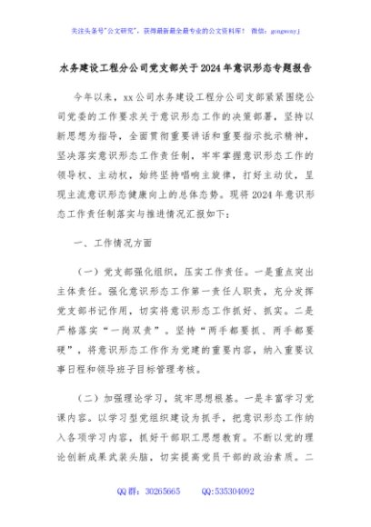 / 水务建设工程分公司党支部关于2024年意识形态专题报告