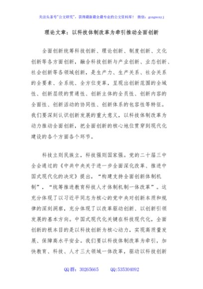 / 理论文章:以科技体制改革为牵引推动全面创新