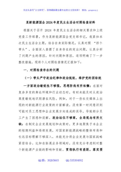 / 某新能源国企2024年度民主生活会对照检查材料