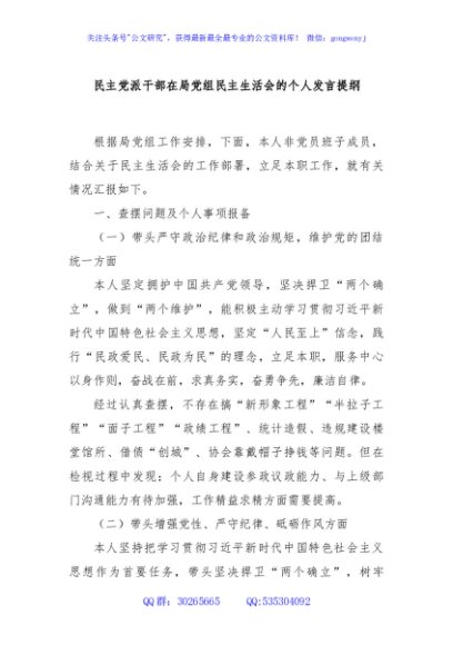 / 民主党派干部在局党组民主生活会的个人发言提纲