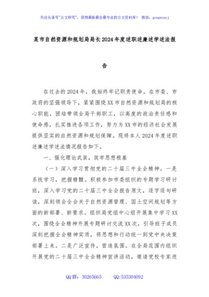 / 某市自然资源和规划局局长2024年度述职述廉述学述法报告