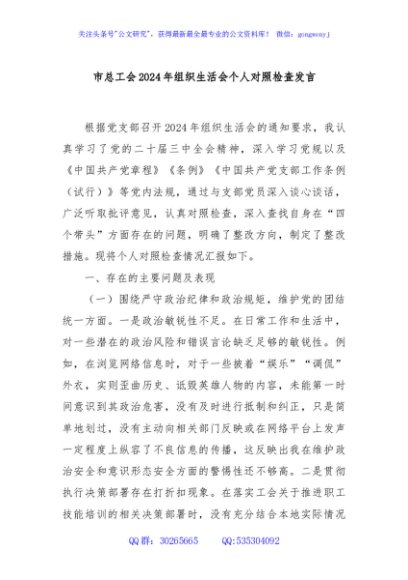 市总工会党组2024年民主生活会整改工作方案(含查摆的问题)