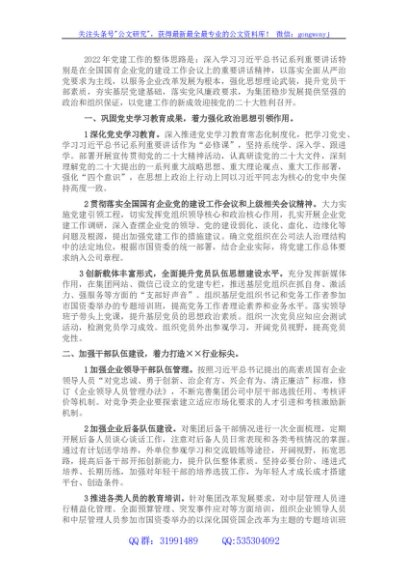 / 国企2022年党建与党风廉政建设工作要点 (2)
