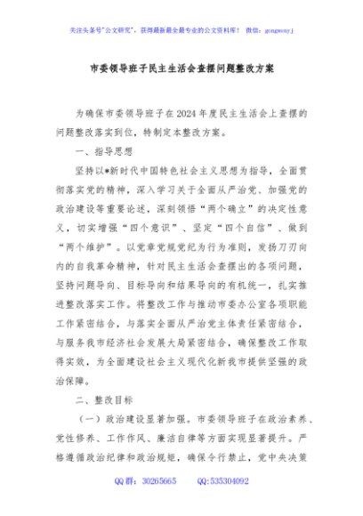 / 市委领导班子民主生活会查摆问题整改方案