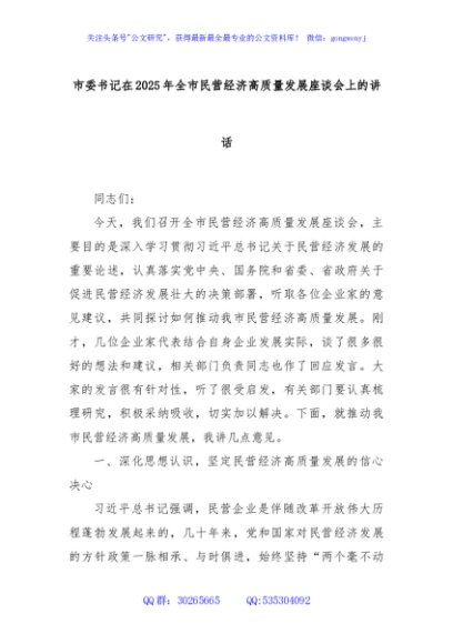/ 市委书记在2025年全市民营经济高质量发展座谈会上的讲话