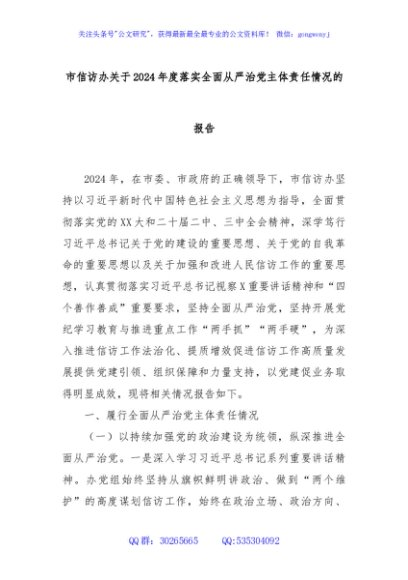/ 市信访办关于2024年度落实全面从严治党主体责任情况的报告