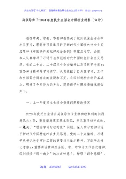 / 局领导班子2024年度民主生活会对照检查材料(审计)