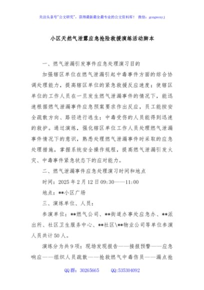 / 小区天然气泄露应急抢险救援演练活动脚本