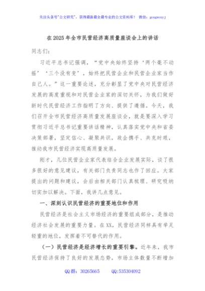 / 在2025年全市民营经济高质量座谈会上的讲话
