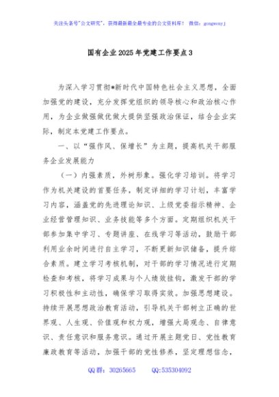 / 国有企业2025年党建工作要点3