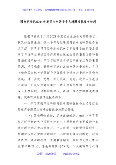 / 团市委书记2024年度民主生活会个人对照检视发言材料