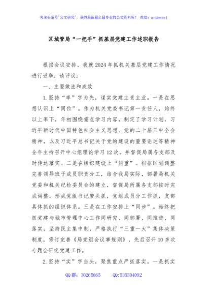 / 区城管局“一把手”抓基层党建工作述职报告