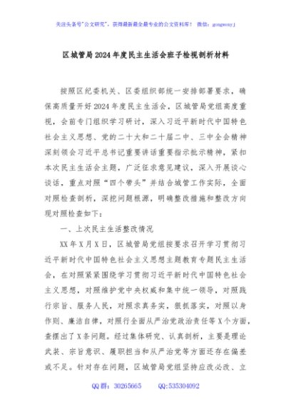 / 区城管局2024年度民主生活会班子检视剖析材料