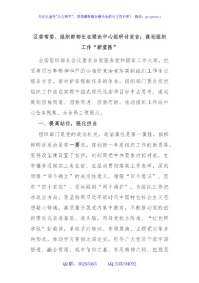 / 区委常委、组织部部长在理论中心组研讨发言:谋划组织工作“新蓝图”