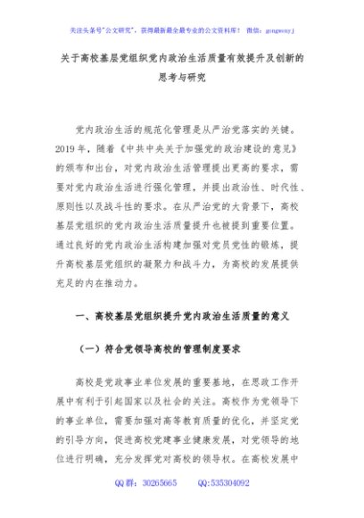 / 关于高校基层党组织党内政治生活质量有效提升及创新的思考与研究